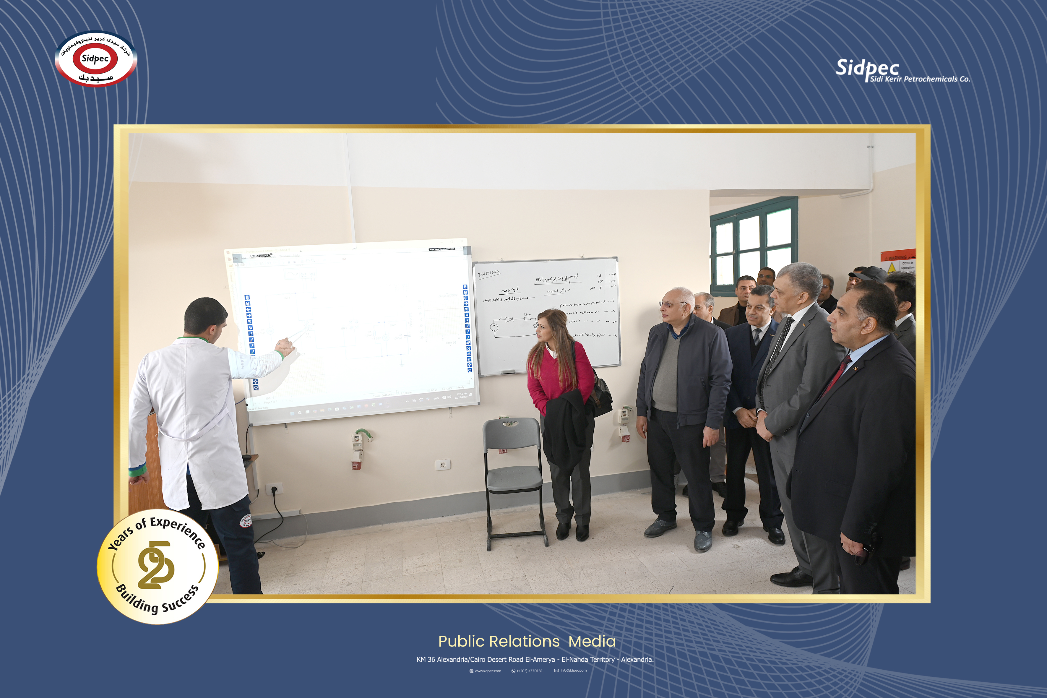 بالإضافة إلى زيارة المدرسة لمتابعة سير العملية التعليمية والورش والمعامل المجهزة بأحدث النظم التكنولوجية بالإضافة إلى معمل اللغات والحاسب الآلي ومحطة الطاقة الشمسية والملاعب الرياضية والإطلاع على التجهيزات الفنية والبنية التحتية ودورها في خلق مسارات تعليمية متخصصة تعتمد على الدمج الكامل بين الدراسة النظرية والتدريب العملي وفقاً لمعايير الجودة العالمية بما يسهم فى تخريج فنيين مؤهلين يمتلكون الكفاءة والمهارة والإنضباط المهني خاصة في القطاعات الصناعية الحيوية ومنها قطاع البتروكيماويات.